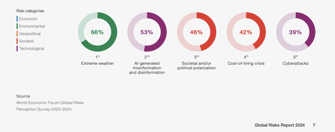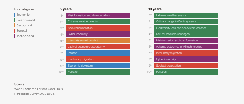 Home GCC WEF’s 2024 global risk matrix: GCC a beacon of hope Renée McGowan, CEO of Marsh McLennan IMEA, says the GCC is in a stable position where it could have a positive impact on world affairs. by Gareth van Zyl January 16, 2024 Follow us Follow on Google News Follow on Facebook Follow on Instagram Follow on X Follow on LinkedIn Renée McGowan, CEO of Marsh McLennan IMEA. Misinformation, disinformation and climate change have topped the list of risks in this year’s Global Risks Report, which will be unveiled at the World Economic Forum (WEF) in Davos this month. The WEF report, produced in partnership with Zurich Insurance Group and Marsh McLennan, draws on the views of over 1,400 global risks experts, policy-makers and industry leaders surveyed in September 2023. The survey results are regarded as a key pillar of the WEF’s Global Risks Initiative, which works to raise awareness and build consensus on the risks the world faces, in a bid to improve risk preparedness and resilience. “The global risks report has been running over 20 years now, and it looks at taking stock of what are the global risks that are impacting countries, governments, institutions, organisations and, of course, individuals,” Renée McGowan, CEO of Marsh McLennan IMEA, tells Gulf Business in a recent interview about the report’s results. “It’s a very sophisticated report. It takes in the view of 1500 experts around the world and we take their outlook regarding specific risks in both the relative near term as well as the long term,” McGowan adds. And chiefly, the report identifies five key risk areas, with these being: economic, environmental, geopolitical, societal and technological. Source: WEF’s 2024 Global Risks Report Diving deeper into the report, misinformation and disinformation (technological) are regarded as the top global risk for the next two years. This amid concerns over how technologies such as AI could impact our societies, especially amid over 50 elections being held worldwide in 2024. This is followed by concerns over extreme weather events. Societal polarisation and cyber security concerns are in third and fourth position, respectively for the next two years. But on the longer term 10-year view, respondents have markedly different views with environmental concerns taking over completely. Here, concerns over extreme weather events, critical change to earth systems, biodiversity loss and ecosystem collapse, as well as natural resource shortages dominate the list of the top four risks. “We’ve had the hottest summer in the northern hemisphere on record, so people are feeling these impacts right now and governments are aware of them,” says McGowan. “And there’s also an increasing realisation that local communities and even countries won’t necessarily be able to mitigate these adverse weather impacts as well,” McGowan notes. Divergent opinions Another interesting facet of this year’s report, however, is the differing views held by younger respondents versus their older counterparts. “66 per cent of respondents in the survey actually placed extreme weather as a top risk. But the differences were quite acute between younger and older demographics. Extreme weather is particularly urgent for younger demographics but it is seen as less urgent for some older demographics. Now this obviously reflects cultural differences between demographics,” says McGowan. “It also reflects the fact that there is a healthy bias for action amongst younger generations as well. There may be a frustration with what has been the pace of change addressing climate change over prior years and an urgency for action. There was one other different bifurcation in there as well in that extreme weather was seen as more urgent in the public sector in organisations than it was in the private sector, which was a little bit of a surprise,” McGowan notes. Source: WEF’s 2024 Global Risks Report GCC’s place The report also took into account responses from the Middle East and GCC countries. “If we look at the Middle East, the big countries such as the UAE and the Kingdom of Saudi Arabia had some similar risks aligned with the broad global risks,” says McGowan. There is also a view among respondents in the region that governments here are tackling some of the biggest issues facing the world right now, particularly when it comes to risks such as climate change. “We just had COP28 in the UAE at the end of last year, and we really got to see the significant inroads that are happening in the Middle East to accelerate climate transition to ensure a just transition, as well as the sheer amount of investment,” says McGowan. “With all that investment and the positive direction from governments in the Middle East, we also see more social cohesion and we see more economic growth and opportunity. It’s kind of like a positive flywheel, meaning that things like social impact and polarisation, things like the alarming impact that disinformation could have are probably reduced a bit in the Middle East. “And then also things like climate change and the investment that is happening, we will likely see that parts of the Middle East will lead the way for other regions in the world,” McGowan concludes. Unable to display PDF file. Download instead. Tags Global Risks podcast Risks WEF world economic forum