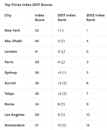 The UAE capital moved up two places in comparison to the last index in 2013 and overtook London (third) and Paris (fourth) in the process, with New York holding on to the top spot.