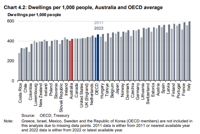 It currently ranks 23 out of 33 developed countries for the number of dwellings per 1000 people, according to figures from the Organisation for Economic Co-operation and Development (OECD).