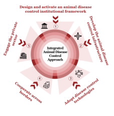 Design and activate an animal disease control institutional framework: The first element is to design an institutional framework and get it operating. Agriculture ministries need to establish a dedicated animal disease control (ADC) body, which can supervise and implement all animal health and welfare policies and oversee the response effort during outbreaks. The ADC body should be led by an autonomous chief veterinary officer. It should include consultative committees with other government entities, such as ministries of health, municipalities, and other authorities, to coordinate emergency plans and respond to outbreaks.