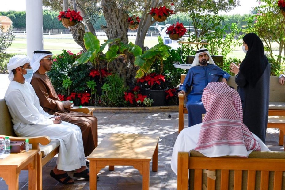 UAE leaders Sheikh Mohammed bin Rashid Al Maktoum, Vice President and Prime Minister of UAE and Ruler of Dubai, and Sheikh Mohamed bin Zayed Al Nahyan, Crown Prince of Abu Dhabi reviewed the final preparations by the Emirates Mars Mission team on Monday.