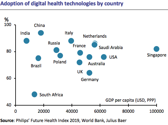 Home Brand View Why Covid-19 is leading to a digital transformation in healthcare The pandemic will prompt authorities to re-examine the robustness of their healthcare systems, says Damien NG, PhD, Next Generation Research at Julius Baer by Damien NG April 30, 2020 Follow us Follow on Google News Follow on Facebook Follow on Instagram Follow on X Follow on LinkedIn Pandemic exposes weak healthcare systems The outbreak of the coronavirus has undoubtedly exposed the woeful shortcomings of some healthcare systems in developed and developing countries alike. Nevertheless, the pandemic should serve as a wake-up call for all to better prepare for the adverse impact of future infectious threats, as vulnerabilities in our healthcare systems and inequalities in access to health services due to ever-spiralling medical costs have been revealed. For instance, Americans incur a disproportionate amount of expenditure on their health relative to their wealth. But despite higher spending on healthcare, roughly 28 million Americans do not have healthcare insurance at all and nearly 90 per cent of those who have, are underinsured. Some of them might even be forced to go to work despite being sick. It is therefore in this context that Covid-19 will inevitably prompt authorities and healthcare organisations to re-examine the robustness of their national healthcare systems. Put simply, the extent of the outbreak will hasten the further digital transformation of healthcare to improve patient care. Greater adoption of digital health technologies should also free up capacities at clinics and hospitals. An example lies in the field of telemedicine. Specifically, online medical consultation became a popular source of healthcare advice among Chinese consumers during the outbreak. The increasing uptake of digital health technologies is in line with the outcome revealed by the 2019 Philips Future Health Index. According to the survey, 94 per cent of Chinese healthcare professionals currently use some form of digital health technology or a mobile health app, compared with 85 per cent in Saudi Arabia, 76 per cent in the US and 48 per cent in South Africa. What is really happening in China and Saudi Arabia is that both countries are at the forefront of adopting the use of new technologies to track health data via apps installed on mobile phones to overcome the shortage of physicians in the countries. Unlocking the secrets of Covid-19 In addition to online healthcare, biotech companies and public health institutions in the US, Europe and China are also scrambling to develop treatments to counter the global fallout of the disease. In particular, they are increasingly turning their focus to the genetic code of Covid-19 to map the spread of the virus and its mutations, thanks to the use of artificial intelligence and declining costs of genome sequencing over the years. The research into the DNA of Covid-19 and those of human individuals has led to hopes that gene-based cures can be found. Potential treatments include anti-viral medicines, vaccines, plasma-derived therapies, CRISPR technologies and diagnostics tests. Testing, testing and more testing Since the World Health Organization has strongly recommended the importance of testing patients for Covid-19, this article will concentrate on the two nations that have come under media focus for the number of diagnostic tests carried out in their countries. On absolute terms, the US has conducted the most number of Covid-19 tests worldwide. As of April 15, around 3.2 million tests were conducted in the US. This compares to around 500,000 in South Korea. But when we zoom in on a per million population basis, the US is clearly still lagging behind South Korea. But the good news is that figures show the US is rapidly ramping up the number of diagnostic tests for its citizens. Beyond the Covid-19 crisis Although the pandemic has caught many governments and public healthcare institutions off-guard, the crisis has surely brought the importance of genomic research to the fore. Why is that so? Despite the intensive media coverage of Covid-19 pandemic, medical professionals are also silently fighting battles against other deadly diseases. For example, in 2019, there were 19 million people who contracted cancer worldwide. Out of the 19 million, 10 million died from cancer. Compare these mindboggling numbers with that of the Covid-19 deaths at over 227,000 as of April 30, according to a tally by Johns Hopkins University. In other words, the knowledge gained from the Covid-19 research could pave the way for more study into gene-based therapies and other health technologies to combat present and future health threats. Not only will this research help the world deal with the present infection, but it could also herald an era of tailored treatments for other diseases like cancer, Alzheimer’s and diabetes, depending on the patient’s DNA composition. All in all, the pandemic should further foster a long-term transformation of the healthcare industry, rendering it more resilient and more efficient for mankind. Damien NG is a thematic research analyst at Swiss wealth manager Bank Julius Baer Tags cancer China Covid-19 Damien NG Digital health Healthcare Julius Baer pandemic Saudi Arabia South Korea Sponsored content testing transformation US 0 Comments