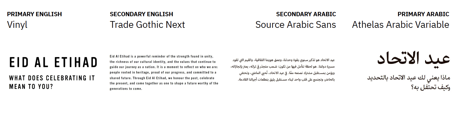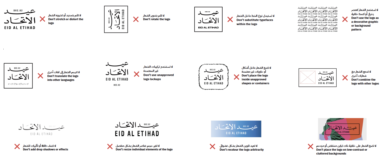 Home GCC UAE Do’s and don’ts: Eid Al Etihad 2025 brand guidelines The Eid Al Etihad guidelines are designed to ensure a consistent national narrative across government, business and community initiatives by Gareth van Zyl October 8, 2025 Follow us Follow on Google News Follow on Facebook Follow on Instagram Follow on X Follow on LinkedIn Festivities will begin with Flag Day on 3 November and culminate on Eid Al Etihad on 2 December. Brand guidelines for this year’s Eid Al Etihad celebrations in the UAE have been unveiled, outlining detailed instructions on how to apply the official visual identity as the nation prepares to mark its 54th Union anniversary on 2 December. The 54th Eid Al Etihad Team this week brought together representatives from all seven emirates in a working session “designed to align efforts and create a cohesive approach to the upcoming festivities.” “This year’s celebrations reflect the shared spirit of the Union and the cultural and social bonds that connect everyone who calls the UAE home,” the team said in a statement. Under the 2025 theme “United,” the guidelines are designed to ensure a consistent national narrative across government, business and community initiatives. The Eid Al Etihad 54 identity draws inspiration from the early street signs that appeared during the UAE’s formation under the leadership of the late Sheikh Zayed bin Sultan Al Nahyan. “In an effort to honour Sheikh Zayed’s vision, commitment and involvement in the UAE’s development, the logo captures the essence of early street signs, in which he played a role in the decision-making process,” the guidelines state. Festivities will begin with Flag Day on 3 November and culminate on Eid Al Etihad on 2 December, with official resources and creative assets available at EidAlEtihad.ae. As part of the celebrations, a comprehensive set of brand guidelines has been published on the official Eid Al Etihad website to ensure all communications, visuals and public displays reflect the spirit of unity and the shared pride of the Union. We summarise some of key design considerations below. The official design rulebook: Do’s and don’ts every brand should follow 1. Honour the brand story The identity celebrates the UAE’s founding spirit and Sheikh Zayed’s vision of unity. It is built to symbolise connection, inclusivity and a shared national vision — “a union of people, cultures, and aspirations” that move together in harmony. 2. Use the correct logo versions There are three official logo variations: Primary Version (No Frame) – standard usage on neutral or light backgrounds. Negative Version – designed for darker backgrounds. Framed Version – used with or without background colour to enhance contrast. Each version captures the character of early Emirati street signs and must not be altered. 3. Apply colours according to the approved palettes The visual identity is based on three palettes: The Flag Palette – drawn from the UAE flag and how its colours respond to light. The Heritage Palette – neutral tones inspired by Emirati culture and heritage. The Seven Emirates Palette – seven symbolic hues representing each emirate through values such as Legacy, Innovation, Wisdom, Resilience, Simplicity, Serenity, and Tranquility.These colours must not be modified or replaced. Examples of usage pictured below: 4. Use the approved typefaces Typography is central to maintaining the visual harmony of the brand: Primary English: Vinyl Secondary English: Trade Gothic Next Primary Arabic: Athelas Arabic Variable Secondary Arabic: Source Arabic SansThese fonts echo the condensed lettering of early Emirati signage and licence plates. Substituting fonts is not allowed. 5. Follow dynamic logo extension rules Frames can be extended to include approved content such as the year number, illustrations, or imagery — provided spacing and proportions remain consistent. 6. Observe co-branding lock-ups When the logo appears alongside partner brands, only official vertical or horizontal lock-ups may be used. They maintain clear spacing, visual balance, and brand integrity. 7. Maintain minimum sizes To ensure legibility in print and digital: Smallest width: 0.9 cm Standard widths: 1.3 cm to 2.3 cm (depending on usage) Logos smaller than the minimum are prohibited. 8. Respect the seven visual emblems Each emirate is represented by a cultural or natural symbol — the palm tree, dhow, fort, pearl oysters, Al Ayyala, Al Naashat, and the rising sun. These can be used creatively, but only in alignment with the official brand assets. 9. Use the “54” year mark correctly The “54” graphic, inspired by licence-plate silhouettes, symbolises movement and unity. The Level 3 illustrative version is the official primary mark for 2025. 10. Ensure brand visualisation consistency Applications across billboards, street flags, and merchandise must maintain visual balance, spacing, and colour harmony. 11. Don’t misuse the logo The following practices are strictly prohibited: Don’t stretch or distort the logo. Don’t rotate the logo. Don’t recolour it arbitrarily. Don’t place it on low-contrast or cluttered backgrounds. Don’t add shadows, gradients, or effects. Don’t use unapproved lock-ups. Don’t place it inside unapproved shapes or containers. Don’t combine it with other logos. Don’t resize individual elements separately. Don’t substitute typefaces within the logo. Don’t use it as a decorative pattern or background element. Don’t translate the logo into other languages. 12. Celebrate connection and collaboration Every visual application should reinforce the spirit of unity, inclusion and progress — the foundation on which the UAE was built. Tags Eid Al Etihad eid al etihad 2025 brand guidelines