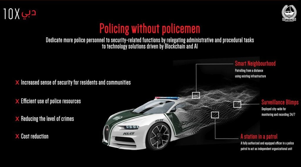 Home UAE Dubai Dubai aims to remove police officers from streets The ‘police without policemen’ project will see the emirate’s police force use cameras and a surveillance blimp to fight crime by Robert Anderson March 13, 2018 Follow us Follow on Google News Follow on Facebook Follow on Instagram Follow on X Follow on LinkedIn Dubai’s police force is preparing for a future where police officers will no longer be needed to patrol the streets through a project under the government’s 10X initiative. The ‘police without policemen’ project will see the authority deploy advanced technologies through three ‘activations’ including a network of cameras on fences and near homes linked with artificial intelligence and crowd sourcing systems previously announced in January. Read: Dubai Police launches AI surveillance programme Dubai Police said it would also launch a surveillance blimp as an airborne early warning system to oversee open spaces and projects under construction and replace traditional police stations with rapid response teams to handle emergencies. The force’s commander in chief, general Abdullah Al Merri, said traditional policing methods often involved the loss of valuable time in identifying and arresting criminals Through the ‘police without policemen’ project the authority aims to improve operational efficiency via new technologies. “With these projects we are bringing to reality the concept of no policemen policing and ensuring that we achieve the highest levels of security and safety for our people without the need for policemen being present on-ground 24/7,” he said. “Through these projects, we aim to strengthen our partnership with the members of the community to strengthen safety and security standards, and respond promptly to any challenges, and ensure the happiness of our citizens and residents.” Dubai Police believes the project will enhance the sense of security in the community and reduce crime levels, while also improving its ability to respond to future challenges. It is working with Dubai Silicon Oasis Authority, developers and private sector companies to supply, install and operate the project within two years. The emirate’s police force is no stranger to new technologies having unveiled plans for robot officers, hover bikes and smart police stations without staff over the last year alone. Read: Dubai Police to establish smart stations in free zones Read: Robocop joins Dubai police duty at Burj Khalifa Read: Video: Dubai Police test hover bike The Dubai 10X initiative aims to position all of the emirate’s government entities 10 years ahead of their global counterparts by deploying new technologies. A total of 26 other projects presented by 24 government departments have been approved for the initiative. 0 Comments