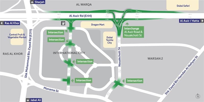 The RTA is currently working on phase two of the Al Awir Road Improvement project which will include improvements on Al Manama Street, upgrading its intersections with Warsan (1) Street, Sheikh Mohammed bin Zayed Road, and the extension of the International City Street.