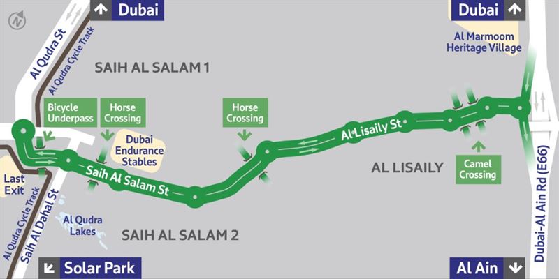 A further nine roundabouts have also been constructed at intersections to improve traffic safety and two crossings have been built for camels, two for horses and one for cyclists.