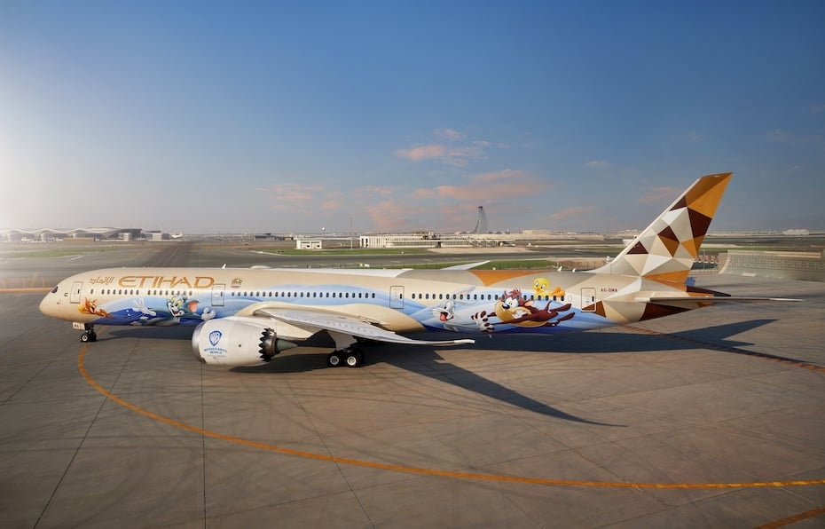 Home Transport Aviation Fly with superheroes: Eithad, Warner Bros. World unveil branded aircraft This collaboration, the first of its kind in the region, offers travellers an immersive experience featuring their favourite Warner Bros. characters by Gulf Business July 25, 2024 Follow us Follow on Google News Follow on Facebook Follow on Instagram Follow on X Follow on LinkedIn Image: Supplied Warner Bros. World Yas Island, Abu Dhabi, the region’s largest indoor theme park, partnered with Etihad Airways to unveil the world’s first Warner Bros. World branded aircraft and an exclusive themed lounge at Zayed International Airport. This collaboration, the first of its kind in the region, offers travellers an immersive experience featuring their favourite Warner Bros. characters. Guests can also enjoy themed experiences in the lounge even before taking off. The partnership was celebrated at a launch event at the theme park, showcasing the creatively decorated Boeing 787-10 Dreamliner. Warner Bros. characters take flight One side of the aircraft features classic animation characters like Looney Tunes and Tom and Jerry, while the other side displays DC Super Heroes such as Batman, Superman, and Wonder Woman. Etihad Airways is introducing new children’s gift packs for kids aged up to 10 on longer flights, featuring DC Super Hero characters. Infants will receive a themed soft blanket, and juniors will get items such as a branded backpack, Super Hero cape, water bottle, and activity kit. Warner Bros. World Abu Dhabi will also debut an exclusively branded children’s lounge within the Etihad Airways Lounge at Zayed International Airport. Mohamed Abdalla Al Zaabi, group CEO of Miral, expressed delight in the partnership, stating the collaboration extended a thrill experience beyond the walls of the theme park, “creating unforgettable memories for passengers of all ages”. Antonoaldo Neves, CEO of Etihad Airways, added, “We’re thrilled to take our partnership with Warner Bros. World to the next level. Our themed aircraft will promote Abu Dhabi’s attractions worldwide, delighting our Little VIP guests during their journey.” Read: How Miral is transforming Abu Dhabi with its grand vision Tags Aviation Branded aircraft Etihad Airways Leisure warner Bros. Miral