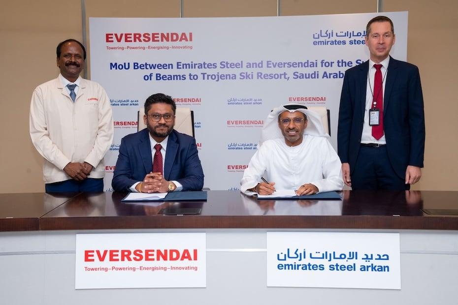 Home Industry Construction Emirates Steel, Eversendai partner for NEOM Trojena Ski Village project In line with the partnership with Eversendai, Emirates Steel will supply premium steel beams for the construction of the ski village by Gulf Business July 19, 2024 Follow us Follow on Google News Follow on Facebook Follow on Instagram Follow on X Follow on LinkedIn Image: NEOM Emirates Steel, a key entity within the Emirates Steel Arkan Group and one of the largest publicly traded steel and building materials manufacturers in the region, has announced a strategic partnership with Eversendai, a global leader in steel construction. The collaboration will focus on the prestigious NEOM Trojena Ski Village project, a key destination in Saudi Arabia’s ambitious NEOM giga project. Emirates Steel will supply premium steel beams known for their sustainability, record-setting low carbon emissions, and exceptional durability, crucial for the construction of the ski village. A strategic partnership for Emirates Steel Saeed Alghafri, CEO of Emirates Steel, expressed his enthusiasm about the partnership, stating, “We are delighted to partner with Eversendai on this significant project, which promises to be a cornerstone of NEOM in Saudi Arabia. “Emirates Steel is committed to supplying benchmark sustainable steel solutions that meet the stringent demands of innovative construction projects. This collaboration exemplifies our dedication to driving sustainable growth across the GCC and delivering value to our partners and stakeholders.” Image: Supplied Narishnath Nathan, Deputy Group Managing Director of Eversendai, emphasised the shared vision of excellence, saying, “Eversendai is proud to collaborate with Emirates Steel on the NEOM Trojena Ski Village, a landmark project that will showcase our collective capabilities in delivering world-class steel construction solutions. “This partnership highlights our commitment to pushing the boundaries of engineering and construction.” Tags Construction Emirates Steel Arkan eversendai neom Trojena ski village Saudi Arabia steel UAE