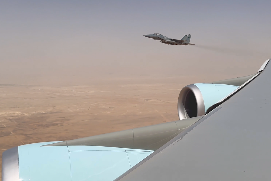 Home GCC WATCH: Saudi F-15s flank Trump’s Air Force One in dramatic Riyadh arrival F-15SA aircraft flanked Air Force One as it approached King Khalid International Airport, in a show of military pageantry by Gareth van Zyl May 13, 2025 Follow us Follow on Google News Follow on Facebook Follow on Instagram Follow on X Follow on LinkedIn Image Credit: X/@Scavino47 Escorted by Royal Saudi Air Force fighter jets, US President Donald Trump touched down in Riyadh on Tuesday to begin a four-day tour of the Gulf that is expected to unlock multi-billion-dollar investment deals across Saudi Arabia, the UAE and Qatar. At least three F-15SA aircraft flanked Air Force One as it approached King Khalid International Airport, in a show of military pageantry shared on video by the official X account of Dan Scavino, assistant to the president. Read more: These Riyadh roads are closed as Trump begins Saudi visit Trump was welcomed on arrival by Saudi Crown Prince Mohammed bin Salman. The two leaders held a brief meeting at the airport, joined by US Secretary of State Marco Rubio. Good morning from Air Force One, Saudi Arabia! Thank you for the escort, and having President Trump’s back—We all appreciate it. See you on the ground shortly, THANK YOU!!!🇺🇸🇸🇦 pic.twitter.com/iGuqfCvnwt — Dan Scavino (@Scavino47) May 13, 2025 The Gulf visit is widely expected to be deal-laden. Looking out the window of Air Force One as we’re going wheels down in Riyadh, Saudi Arabia… https://t.co/UDzPyylyF8 pic.twitter.com/xr5aCHXEWQ — Dan Scavino (@Scavino47) May 13, 2025 Air Force One about to go wheels down in Riyadh, Saudi Arabia with Saudi F-15 fighter jets bringing us in. On behalf of President Trump, THANK YOU! 🇺🇸🇸🇦 https://t.co/UDzPyylyF8 pic.twitter.com/Nd6DnRGtZD — Dan Scavino (@Scavino47) May 13, 2025 Trump will also attend the Saudi-US Investment Forum in Riyadh today, hosted at the King Abdulaziz International Conference Center. Executives from BlackRock, Citigroup, IBM and Alphabet are expected to attend, underscoring efforts to deepen US-Gulf commercial ties. Read more: Trump jets into Saudi, UAE and Qatar with trillion-dollar investment ambitions Elon Musk, founder of Tesla and SpaceX, is also in attendance, along with Jensen Huang, the CEO of Nvidia. Tags Saudi Arabia Trump US