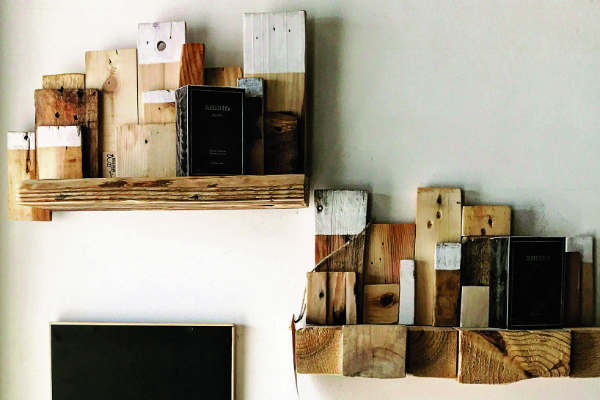 “The Doaan collection is inspired by the Wadi Doan in Yemen, with its rock formation and man-made buildings that blend in and work in harmony with nature,” says Al Habori, who has complemented the chalkboard with a collection of tables and stools, which were made using rustic wooden cubes.