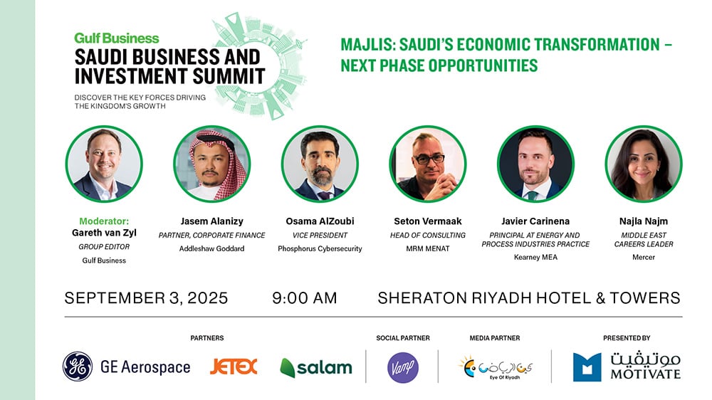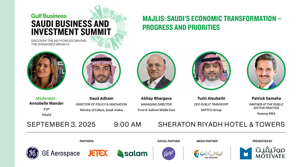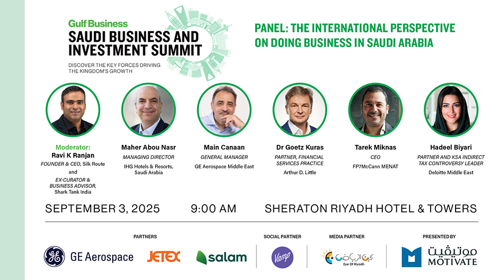 Saudi Business and Investment Summit When: September 3, 2025 9:00 am Where: Sheraton Riyadh Hotel & Towers Saudi Rising: Key Driving Forces behind the Kingdom’s Economic Growth As Saudi Arabia fast-tracks its economic transformation under Vision 2030, the Gulf Business – Saudi Business and Investment Summit will bring together influential voices from government, business, and global institutions to explore how the Kingdom is translating ambition into action. The summit will spotlight innovation, regulatory reform, public-private collaboration, and strategic investment sectors fuelling the Kingdom’s emergence as a globally competitive economy. With a strong focus on doing business in Saudi Arabia, discussions will unpack the evolving investment climate, growth opportunities, and practical pathways for companies looking to enter or expand in the market. When: 03/09/2025, 9:00am Where: Sheraton Riyadh Hotel & Towers (location map) REGISTER INTEREST TO ATTEND Agenda 09:00 – 10:00 | Registration & NetworkingArrival of guests, coffee and light refreshments. A chance to connect with fellow delegates before the sessions begin. 10:00 – Welcome speech by Manish Chopra, Publisher of Gulf Business 10:05 – Opening remarks by Gareth van Zyl, Group Editor of Gulf Business 10:10 – 10:20 | Opening KeynoteMichael Champion, CEO, Tahaluf 10:20 – 10:50 | Majlis Part 1: Saudi’s Economic Transformation – Progress and PrioritiesHow are Saudi Arabia’s key sectors progressing against Vision 2030 goals? This opening discussion explores investment momentum, cross-sector collaboration, and the enabling regulatory landscape. Moderator: Annabelle Mander, EVP, TahalufSpeakers: Saud Adham, Director of Policy & Innovation, Ministry of Culture, Saudi Arabia Abhay Bhargava, Managing Director, Frost & Sullivan Middle East Turki Alsubaihi, CEO Public Transport, SAPTCO Group Patrick Samaha, Partner at the Public Sector practice of Kearney MEA 10:50 – 11:00 | Audience Q&A 11:00 – 11:30 | Majlis Part 2: Saudi’s Economic Transformation – Next-Phase OpportunitiesBuilding on the insights from Part 1, this session takes a closer look at emerging opportunities, sector-specific growth stories and the policy frameworks shaping the next phase of Vision 2030. Speakers will share case studies on investment wins, innovation roll-outs and how public–private partnerships are accelerating economic diversification. Moderator: Gareth van Zyl, Group Editor, Gulf BusinessSpeakers: Jasem Alanizy, Partner, Corporate Finance, Addleshaw Goddard Osama AlZoubi, Vice President, Phosphorus Cybersecurity Seton Vermaak, Principal Consultant, MRM MENAT Javier Carinena, Principal at Energy and Process Industries Practice of Kearney MEA Najla Najm, Middle East Careers Leader at Mercer 11:30 – 11:40 | Audience Q&A 11:40 – 12:10 | Panel: The International Perspective on Doing Business in Saudi ArabiaGlobal firms share insights on market entry, localisation, regulatory navigation and the evolving commercial landscape. Panellists will also explore the practicalities of operating in Saudi Arabia as a global business — from forging strategic alliances and navigating compliance, to adapting products and services for local consumers. Moderator: Ravi K Ranjan, Founder & CEO Silk Route, Ex-Curator & Business Advisor Shark Tank India Speakers: Maher Abou Nasr, MD, IHG Hotels & Resorts, Saudi Arabia Main Canaan, GM, GE Aerospace Middle East Dr Goetz Kuras, Partner, Financial Services Practice, Arthur D. Little Tarek Miknas, CEO, FP7McCann MENAT Hadeel Biyari, Partner and KSA Indirect Tax Controversy Leader at Deloitte Middle East 12:10 – 12:20 | Audience Q&A 12:20 – 12:30 | Gamechanger Awards 12:30 – 12:40 | Closing RemarksGareth van Zyl, Group Editor, Gulf Business — Summarising key insights and setting the stage for continued engagement in the Kingdom’s business landscape. 12:40 – 14:00 | Networking LunchSeated lunch for attendees to continue discussions and explore future collaboration. REGISTER INTEREST TO ATTEND For sponsorship opportunities, please email Manish Chopra [email protected] Tags Events You might also like Dubai Fitness Challenge 2025: Action-packed calendar revealed Dubai startup PartyPlatform targets shaking up party planning scene Dubai World Trade Centre to host over 135 events in H2 2025; see list BCCD keeps Dubai’s business community buzzing this summer