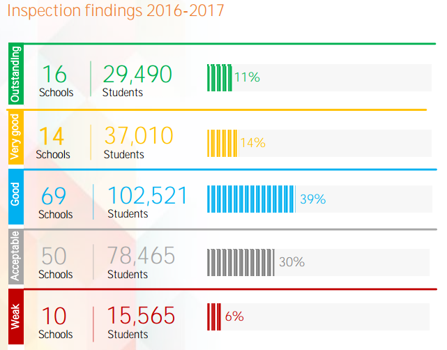 Home Industry Education Nearly two thirds of Dubai schools can increase fees by 3.6% or more The schools regulator announced in February that outstanding schools would be able to increase fees by 4.8 per cent by Staff Writer May 17, 2017 Follow us Follow on Google News Follow on Facebook Follow on Instagram Follow on X Follow on LinkedIn Nearly two-thirds (62 per cent) of Dubai schools will be able to increase fees by at least 3.6 per cent this year after being rated good and above by the Knowledge and Human Development Authority (KHDA). In its inspections report covering 159 schools with 263,051 students from early years to grade 12, KHDA rated 16 as outstanding, 14 as very good, 69 as good, 50 as acceptable and 10 as weak. None were rated very weak. The schools regulator announced in February that outstanding schools would be able to increase fees by 4.8 per cent, very good schools by 4.2 per cent and good schools by 3.6 per cent. Schools rated acceptable and weak can increase fees by 2.4 per cent. Read: Top Dubai schools can hike their fees by up to 4.8% In this year’s report, 10 schools were given an improved rating and four a lower rating. For the first time more than half (54 per cent) of Emirati students in Dubai’s private schools were found to attend good or better schools, double the percentage in 2008-2009. Overall, 64 per cent of students were found to attend good or better schools compared to 30 per cent in 2008-2009. Full performance rankings for individual schools can be found here. 0 Comments