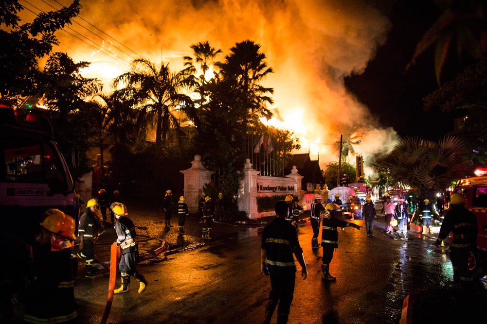 Photos of the week: Myanmar hotel blaze, Philippines conflict, Flaming object in Dubai