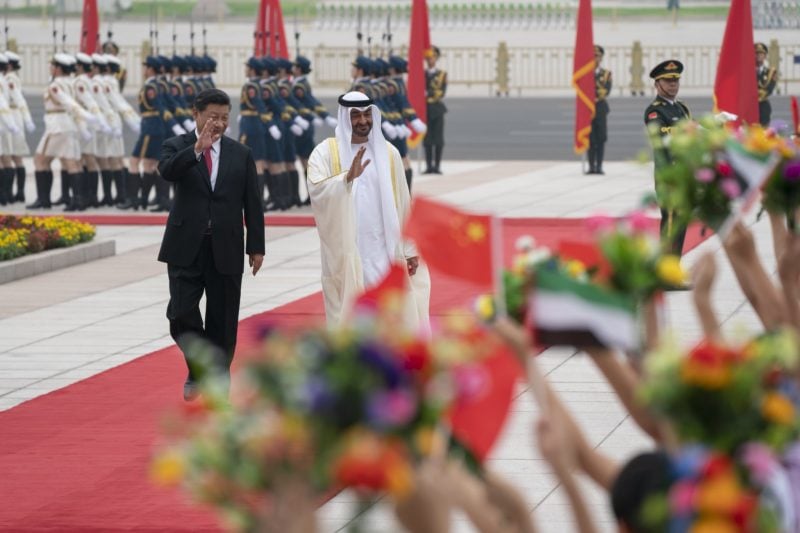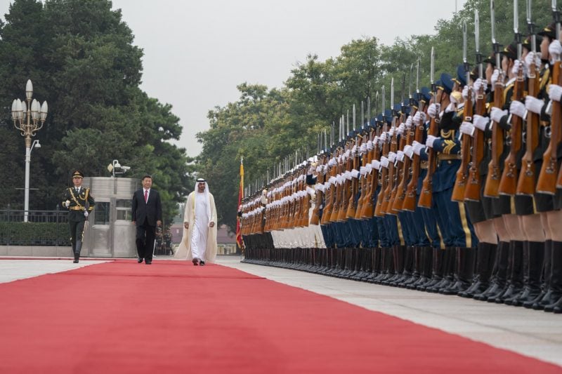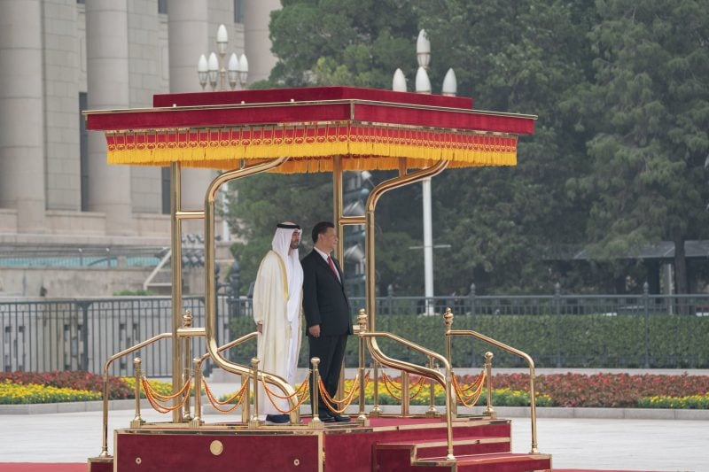 Home GCC UAE In pics: Sheikh Mohamed bin Zayed meets Chinese President Xi Jinping in Beijing The Abu Dhabi Crown Prince arrived in China on Sunday for an official three-day state visit by Aarti Nagraj July 22, 2019 Follow us Follow on Google News Follow on Facebook Follow on Instagram Follow on X Follow on LinkedIn Abu Dhabi Crown Prince Sheikh Mohamed bin Zayed met Chinese President Xi Jinping in Beijing on Monday. Sheikh Mohamed, who arrived in China on Sunday for an official three-day state visit, was welcomed at the Great hall of the People in Beijing with an official reception. He is accompanied by a senior delegation of officials from the UAE. Sheikh Mohamed and Xi Jinping will seek ways of boosting co-operation between the two countries and also discuss regional and international issues of common interest. The two leaders are also expected to witness the signing of mutual agreements covering economy and oil. Sheikh Mohamed’s visit to China “will go down as another milestone in the history of our relations,” Chinese foreign minister Wang Yi told official news agency WAM in an interview on Sunday. Xi Jinping and Sheikh Mohamed will “draw a new blueprint for China-UAE comprehensive strategic partnership”, he said. Sheikh Mohamed’s last state visit to China was in 2015, while President Xi’s last state visit to the UAE was in July 2018. “Our two countries enjoy solid political mutual trust and mutual understanding and support on issues bearing on each other’s core interests and major concerns. With progress in energy, finance, infrastructure and industrial cooperation, our practical cooperation has been thriving in multiple areas,” the minister said. China is the UAE’s second-largest trading partner, with bilateral trade volumes reaching almost $60bn in 2017. That figure is further expected to grow to $70bn by 2020. The UAE’s participation in China’s ‘Belt and Road initiative’ has further deepened the bilateral partnership, the foreign minister said. “I believe the UAE will become a shining pearl along the Belt and Road,” he stated. Yi also highlighted progress on some of the joint projects. “The China-UAE Industrial Capacity Cooperation Demonstration Zone is being built; the whole-industrial-chain cooperation in oil and gas is producing substantial results; the Khalifa Port Container Terminal Two in Abu Dhabi, a joint China-UAE project, is up and running and the Hassyan Clean Coal Power Plant is under construction,” he explained. Looking at areas of future cooperation, the minister said: “It is also important for us to break new ground by expanding cooperation in artificial intelligence, 5G, aerospace, high-speed railway and other high-tech areas.” 0 Comments