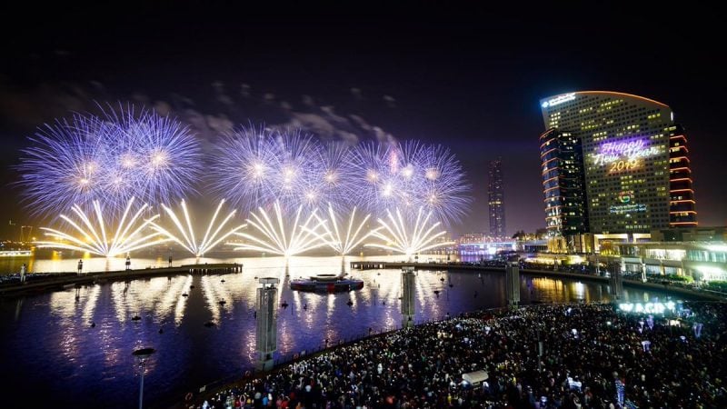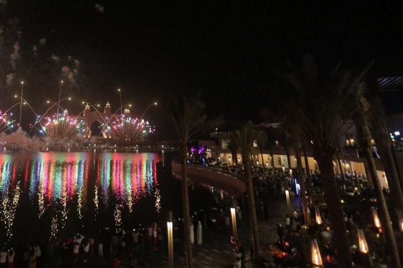 Firework displays were also held at the beach behind Burj Al Arab hotel, Dubai Festival City, Atlantis hotel and Global Village in Dubai.