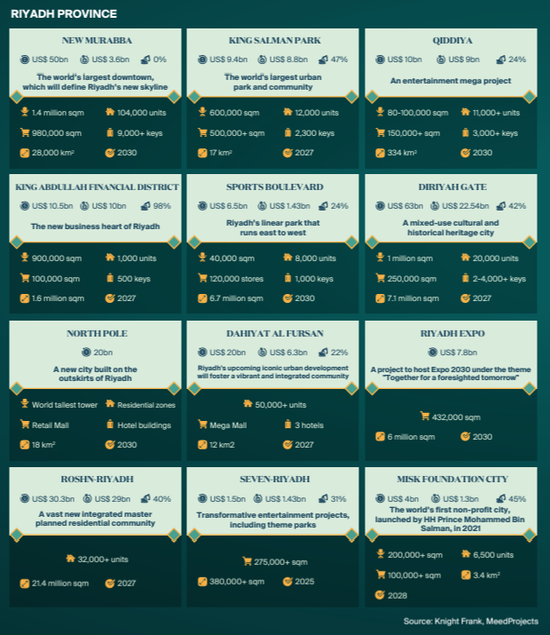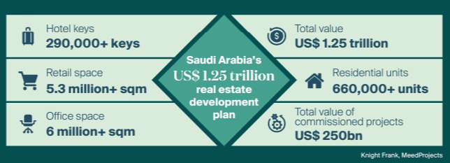 The giga-projects will help develop over 5.3 million square metres of retail space, and 6 million square metres of office space in the kingdom.
