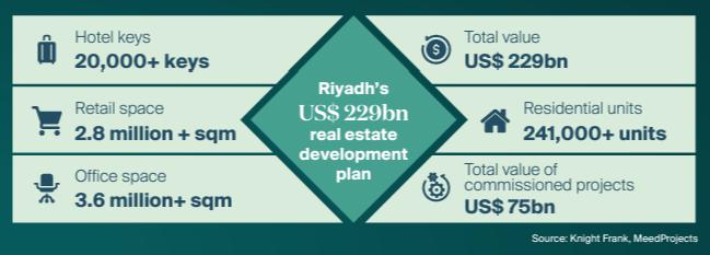 Giga-projects are set to transform Saudi Arabia’s real estate landscape, supporting the anticipated population growth to 40 million and attracting 150 million foreign visitors by 2030.