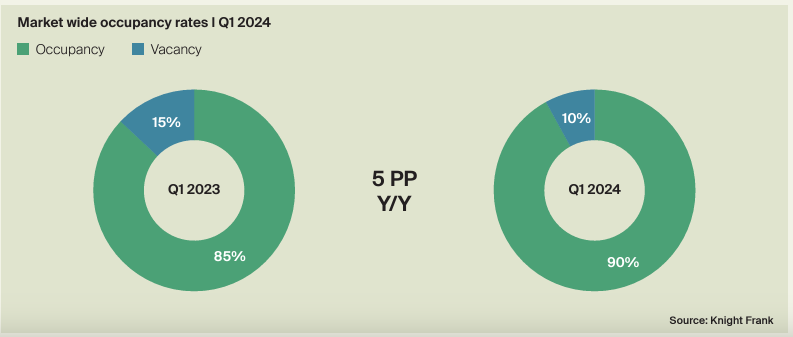 In contrast, Jeddah and the Dammam Metropolitan Area (DMA) saw a slight decline in retail occupancy rates, now at 84 per cent and 89 per cent, respectively. Average rents in Jeddah dropped by 7 per cent to SAR2,465 psm, while DMA experienced a 1.3 per cent decline to SAR2,275 psm.