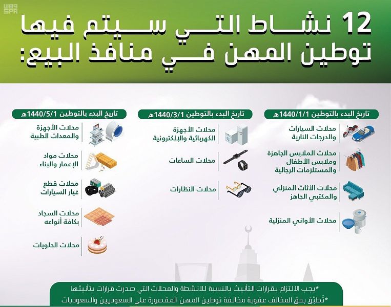 Home GCC Saudi Arabia Saudi prepares inspectors as new restrictions on foreign retail jobs come into force The government wants the majority of retail roles in 12 areas to be held by Saudis from early September by Staff Writer August 29, 2018 Follow us Follow on Google News Follow on Facebook Follow on Instagram Follow on X Follow on LinkedIn Saudi Arabia’s Ministry of Labour and Social Development is preparing to begin a major crackdown on shops across the kingdom as a decision restricting 12 retail roles to citizens comes into effect. The regulation, announced in January, applies to jobs in shops selling watches, eyewear, medical equipment and devices, electrical and electronic appliances, auto parts, building materials, carpets, cars and motorcycles, home and office furniture, children’s clothing, men’s accessories, home kitchenware, confectioneries and pastries. Read: Saudi bars foreigners from 12 job roles Bank of America Merrill Lynch (BofAML) said in a February report that “tens of thousands” of expats could lose their jobs under the restrictions, although there was no specific data available. Read: Saudi work ban could see tens of thousands of expats lose their jobs Arabic newspaper Al-Madinah quoted a source at the Ministry of Labour as saying inspection teams were preparing to implement the decision, although it is understood the Saudisation rate has now been reduced from 100 per cent to 70 per cent for outlets. A total of 200 inspectors will be deployed across the kingdom to catch any violating stores from September 11. “Training courses were held in several regions of the kingdom for male and female inspectors on how to prepare inspection reports and detect and document labor violations,” the source was quoted as saying. The ministry said in a separate announcement confirming the September 11 deadline on Wednesday that the new rules were designed to offer Saudi citizens “work opportunities and raise the rates of their participation in the private sector”. A guide on the new legislation and associated support programmes has been prepared for employers and a committee comprising representatives from the labour ministry, the Human Resources Development Fund and the Social Development Bank formed to prepare for the “resettlement for localisation” programme. An infographic detailing the new rules in Arabic The introduction of higher fuel and electricity prices, new expat fees and a value added tax, along with job restrictions in other sectors including car rental offices and stores selling gold and jewellery, mobile accessories and female specific items, has seen hundreds of thousands leave their jobs over the last two quarters. General Authority for Statistics labour reports showed 234,000 foreign workers left the market in the first three months of the year and more than 277,000 in the final quarter of 2017. Read: Saudi unemployment rises in Q1, 234,000 foreign workers leave jobs Tags Employment expat workers Expats Saudi Arabia foreign worker foreign worker restrictions ministry of Labour and Social Development Retail Saudi Arabia 0 Comments