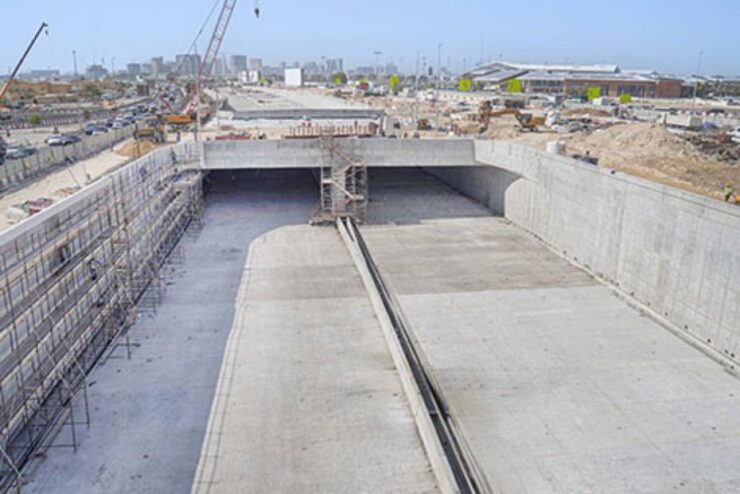The project stretches from the intersection with Al Khail Road to the intersection with Sheikh Mohammed Bin Zayed Road