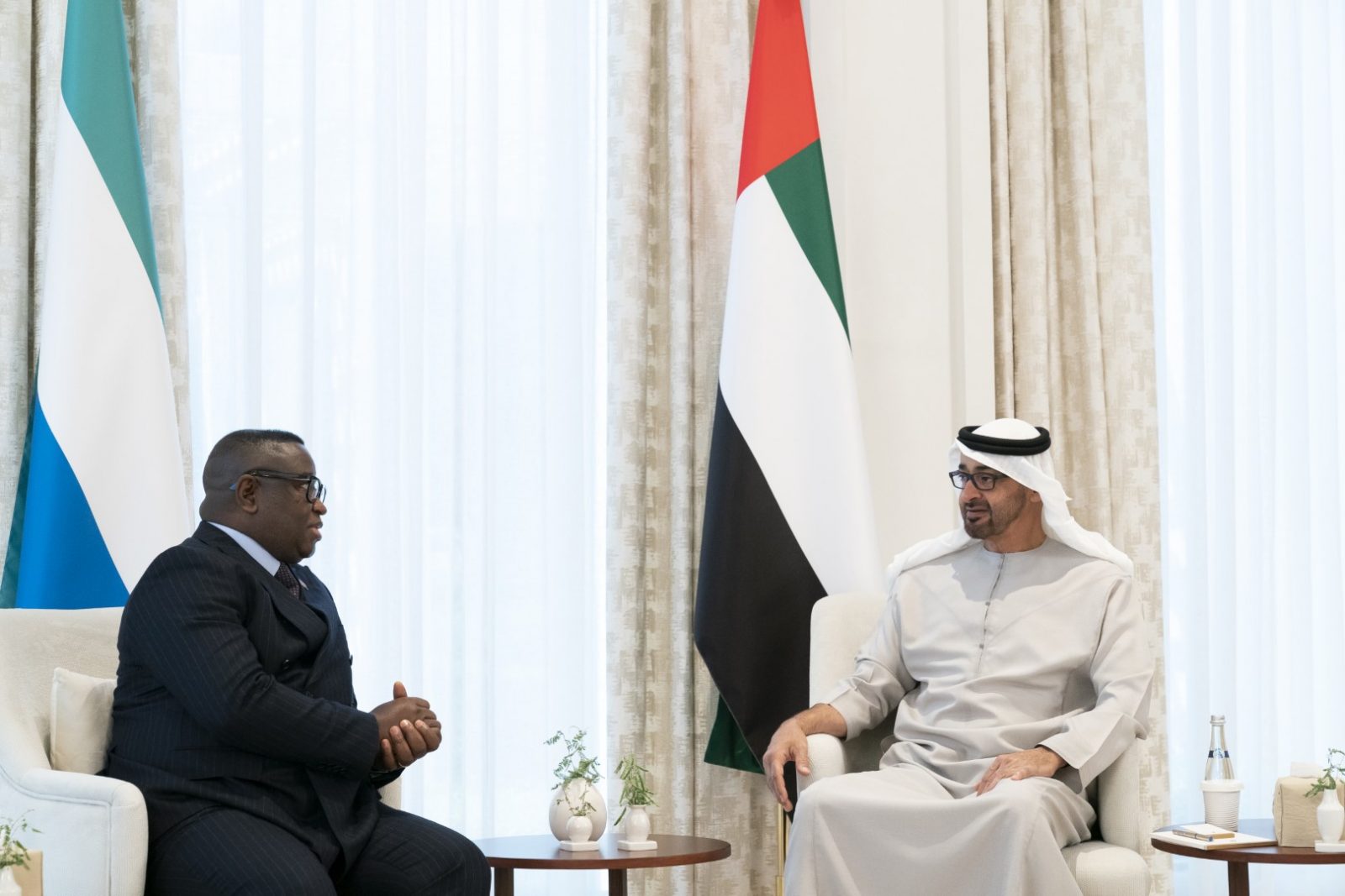 Home GCC UAE Sheikh Mohamed bin Zayed meets with Sierra Leone President in Abu Dhabi The two leaders discussed bilateral relations between the UAE and Sierra Leone, especially in the investment, economic, trade and development fields by Gulf Business October 18, 2021 Follow us Follow on Google News Follow on Facebook Follow on Instagram Follow on X Follow on LinkedIn Abu Dhabi Crown Prince Sheikh Mohamed bin Zayed Al Nahyan met with the President of Sierra Leone, Julius Maada Bio in Abu Dhabi on Sunday. During the meeting, which took place at Al Bahr Palace, Sheikh Mohamed and Bio discussed bilateral relations and co-operation between the UAE and Sierra Leone, especially in the investment, economic, trade and development fields, official news agency WAM reported. They also discussed ways to develop stronger ties and exchanged views on a number of issues of mutual concern. The meeting also highlighted Expo 2020 Dubai and the importance of leveraging the initiatives it offers in the fields of sustainability, opportunity and establishing partnerships between the countries. Sheikh Mohamed wished Bio a pleasant stay in the UAE, and conveyed his wishes of further progress for Sierra Leone. Tags Julius Maada Bio News Sheikh Mohamed Bin Zayed Sierra Leone UAE 0 Comments