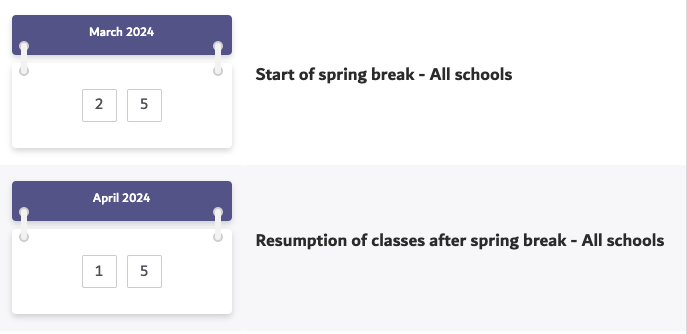 Home UAE Dubai Spring break and Eid holidays: When will schools close? Private schools following the September academic year will commence their Spring Break on March 25, with classes resuming on April 15 by Gulf Business March 21, 2024 Follow us Follow on Google News Follow on Facebook Follow on Instagram Follow on X Follow on LinkedIn Image credit: Getty Images The upcoming spring break combined with the Eid al Fitr break means a holiday bonanza for school kids this year. 3-week long holiday It has been confirmed that Spring Break for all schools in Dubai will be a lengthy three weeks, spanning from Monday, March 25 to Sunday, April 14, 2024, inclusive. This decision marks a departure from previous years, where most private schools traditionally observed a two-week Spring Break period. The extension of the Spring Break period is attributed to the anticipated timing of the Eid Al Fitr public holiday, which is expected to occur on Tuesday, April 9, 2024. This adjustment is significant as it aligns with the academic calendar, particularly for schools that would have faced the challenge of resuming classes for just one day on Monday, April 8, before the onset of the Eid Al Fitr holiday. According to the Knowledge and Human Development Authority (KHDA) in Dubai, private schools following the September academic year will commence their Spring Break on March 25, with classes resuming on April 15. Image credit: KHDA When do schools re-open? The commencement of the Summer term for both private and public schools across the UAE is scheduled for Monday, April 15, 2024, following the conclusion of the three-week Spring vacation. This timing also coincides with the anticipated end of Ramadan and the beginning of the Eid Al Fitr holiday, based on current predictions. As per the official portal of the UAE government, the Eid Al Fitr public holiday is expected to span from the 29th day of Ramadan to the 3rd day of Shawwal in the Islamic calendar, totaling four days. With the 29th day of Ramadan corresponding to April 9, 2024, the Eid Al Fitr public holiday is projected to occur from Tuesday, April 9 to Friday, April 12, 2024. While public holidays will be officially confirmed closer to the time, UAE residents may enjoy an extended six-day long weekend for the Eid break. Read: Eid Al Fitr 2024 likely date predicted by UAE astronomers Tags Eid Al Fitr 2024 Eid holidays Public Holidays UAE spring break