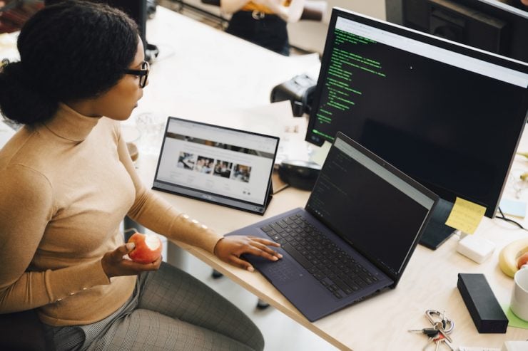 The new ASUS ExpertBook is lightweight and features a stylish look that contrasts with the typical look of business laptops