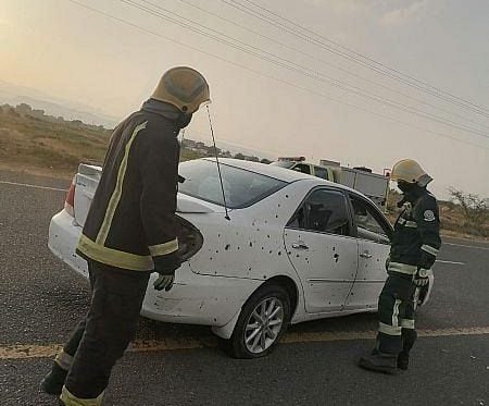 The five civilians faced light injuries as a result of flying shrapnel and were transported to the hospital