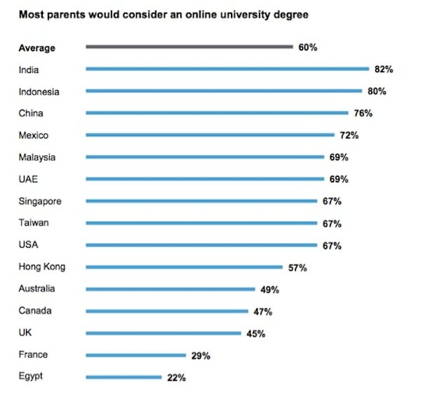 Home Education UAE school fees second highest in the world – HSBC study Up to 69 per cent of UAE parents are considering an online degree for their children by Noha El Chaarani July 6, 2017 Follow us Follow on Google News Follow on Facebook Follow on Instagram Follow on X Follow on LinkedIn A recent study conducted by HSBC has revealed that the UAE has the second highest school fees in the world. According to the study, it costs approximately $99,378 or Dhs365,025 to educate a child from primary school through to university in the UAE. Hong Kong took the first spot, with parents spending about $132,161 per child. The survey conducted falls under HSBC’s The Value for Education series, which polled 8,481 parents from 15 different countries and territories. Also read: Revealed: Most and least expensive schools in Dubai Nearly two thirds of Dubai schools can increase fees by 3.6% or more It reveals insights on parents’ opinions on studying abroad, reasons for pursuing a degree internationally, digital learning and how they intend to provide the funds to educate their children. The study found that 74 per cent of parents are funding their child’s education from day-to-day income. Only 36 per cent said they had general savings, investments or insurance, and 21 per cent had specific education savings or an investment plan. It also showed that parents gave up several preferences or luxuries in life in order to provide sufficient funds for their children’s education. Of those surveyed, 31 per cent said they gave up ‘me-time’ or hobbies, 25 per cent stopped leisure activities or going on holidays, 23 per cent changed working styles, and 20 per cent developed different social circles. Up to 39 per cent of the parents wished they had started saving for their children’s education sooner. Group head of Wealth Management at HSBC, Charlie Nunn, said: “With the rise of the information economy and a challenging job market for young people, education has never been more important than it is today. Parents know this and they are willing to go to great lengths to secure the right educational opportunities for their children.” Despite high education costs, the report also revealed that 91 per cent of the surveyed individuals would prefer to have their children earn postgraduate degrees. More than three quarters of the parents believed that completing a postgraduate degree would offer their children better employment opportunities. Meanwhile, over 41 per cent of the parents also hope for their children to pursue a university education abroad. The reasons for this were not restricted to better employment opportunities, but also extended to the development of foreign language skills (49 per cent), exposure to new experiences (48 per cent), increasing self-confidence (44 per cent), and allowing their children to gain independence (43 per cent). Globally, the survey also found that 60 per cent of parents are considering online education for their children. Interestingly, that percentage increased to 69 per cent in the UAE. The two most common reasons for opting towards an online education were less money invested on travel or living costs (52 per cent), and dramatically less tuition fees and activity expenses (50 per cent). Other benefits included the comfort of education from home, developing technological skills and more opportunity to work and study simultaneously. 0 Comments
