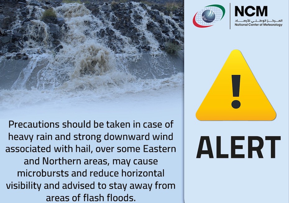 The National Center of Meteorology (NCM) reported that the weather is expected to be partly cloudy to cloudy with intermittent rainy clouds in scattered regions, particularly in the Northern and Eastern areas.