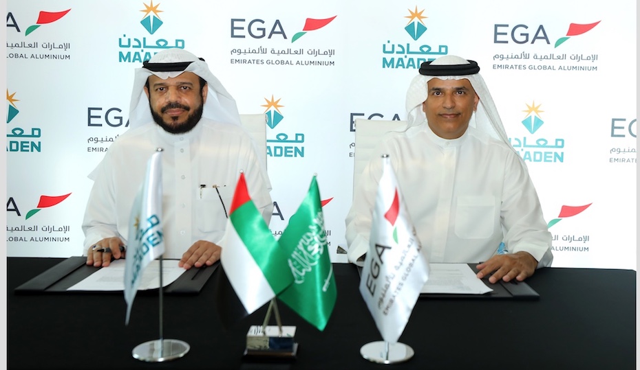 Emirates Global Aluminium (EGA) and Saudi Arabian Mining Company (Ma’aden) have signed an agreement to extend their exploration of potential collaboration on technology in the aluminium value chain.