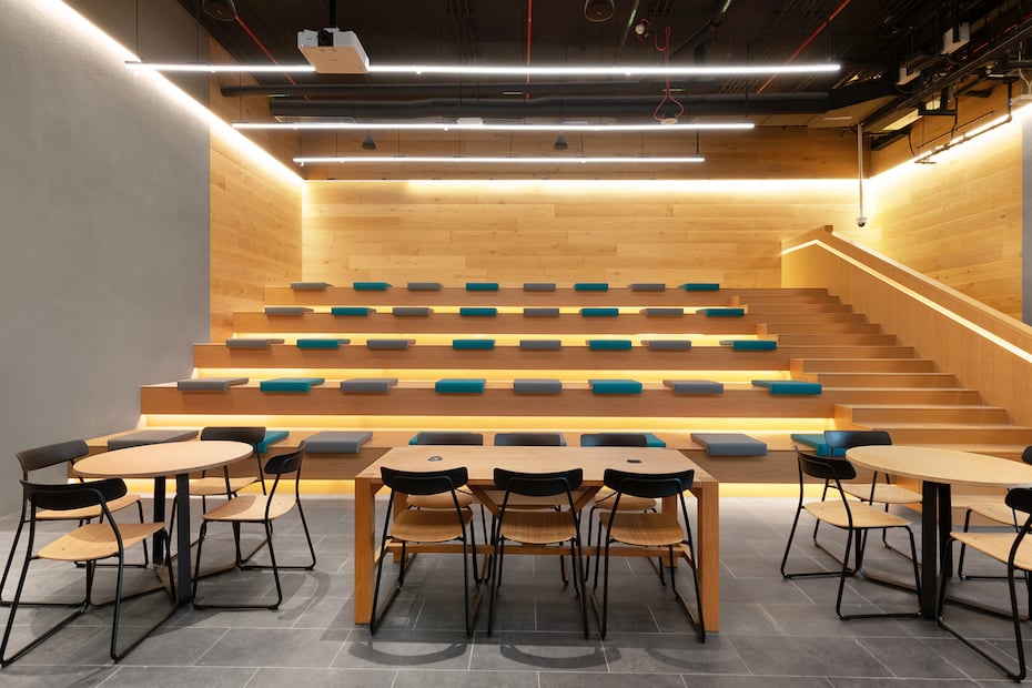 Set to serve roughly 4,000 students, the new campus features collaborative lecture theatres, pod rooms designed to offer group-based learning, as well as seminar rooms which have been designed as flexible spaces.