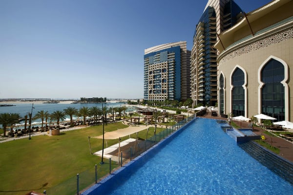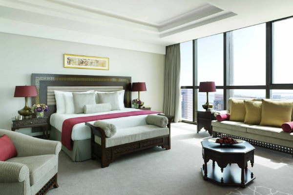 Guests in rooms facing the front of the five-star property also enjoy spectacular views over the Abu Dhabi Presidential Palace and the nearby coastline.
